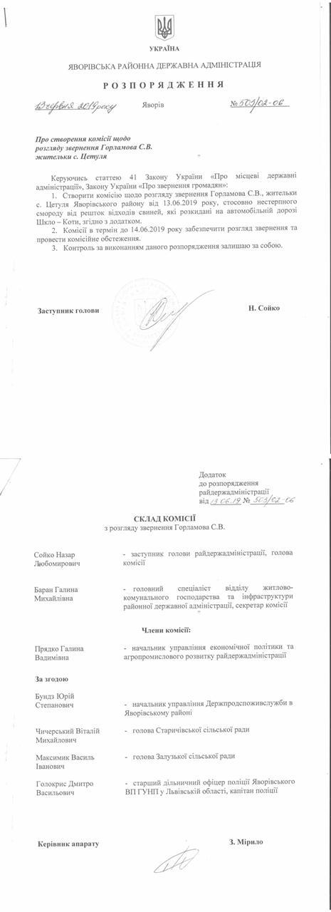 №503/02-06 2019-06-18 Про створення комісії щодо розгляду звернення Горламова С.В. жительки с. Цетуля