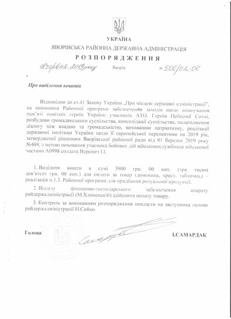 №506/02-06 2019-06-20 Про виділення коштів