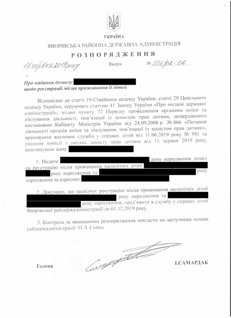 №508/02-06 2019-06-20 Про надання дозволу щодо реєстрації місця проживання її дітей