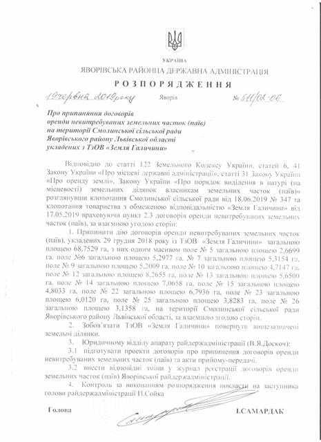 №511/02-06 2019-06-25 Про припинення договорів оренди невитребуваних земельних часток (паїв) на території Смолинської сільської ради Яворівського району Львівської області з ТзОВ "Земля Галичини"