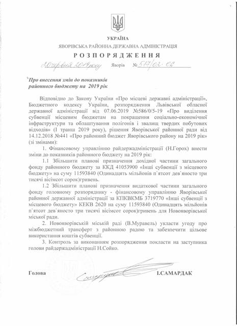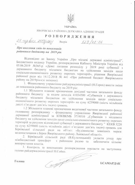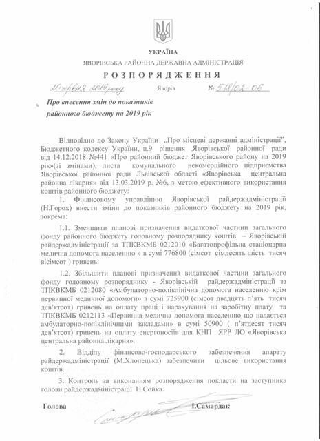 №518/02-06 2019-06-26 Про внесення змін до показників районного бюджету на 2019 рік