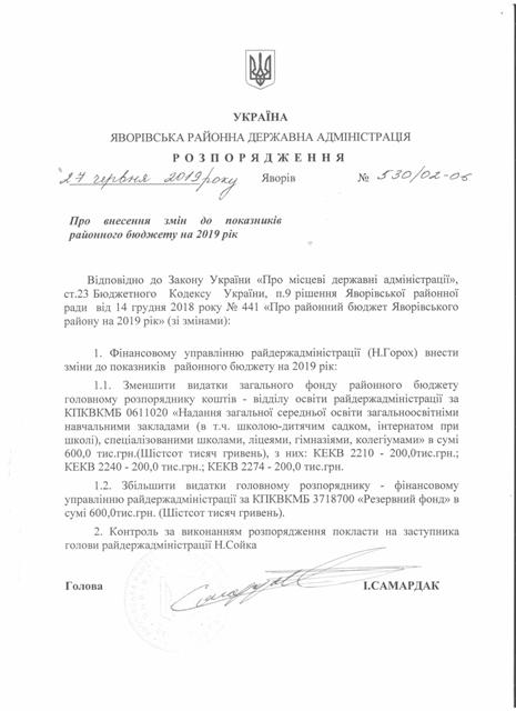 №530/02-06 2019-07-03 Про внесення змін до показників районного бюджету на 2019 рік