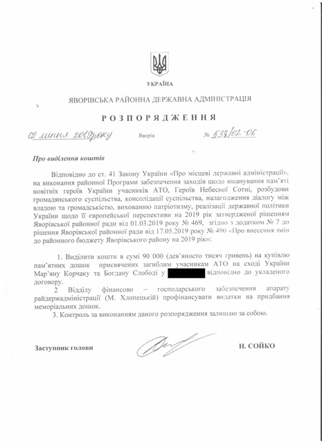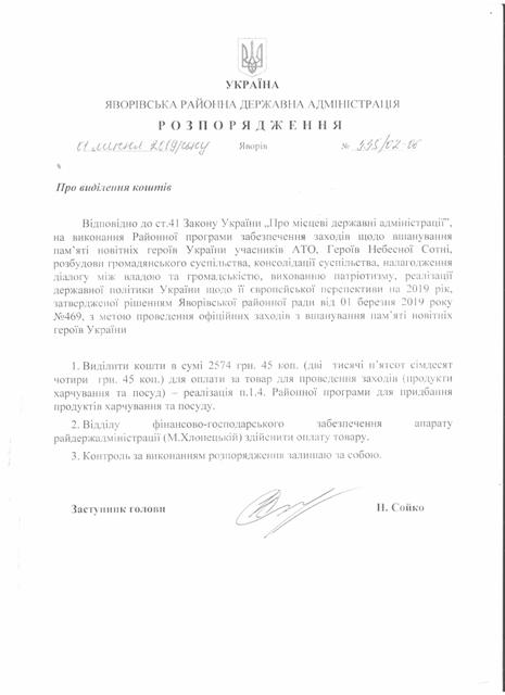 №535/02-06 2019-07-04 Про виділення коштів
