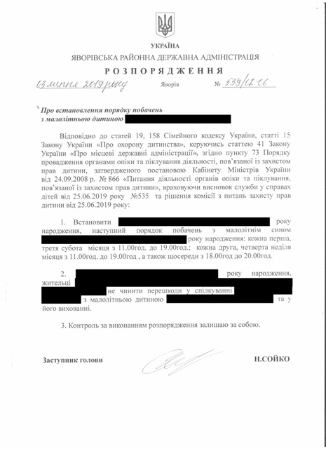 №539/02-06 2019-07-09 Про встановлення порядку побачень з малолітньою дитиною