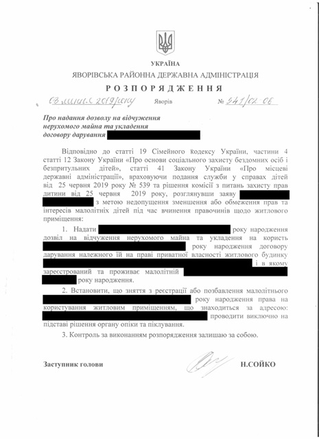 №540/02-06 2019-07-09 Про надання дозволу на відчуження нерухомого майна та укладення договору дарування