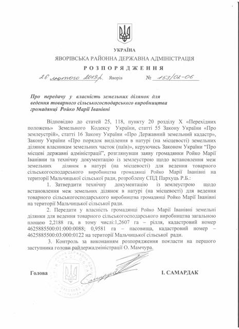 №153/02-06 2019-03-01 Про передачу у власність земельних ділянок для ведення товарного сільськогосподарського виробництва громадянці Ройко Марії Іванівні