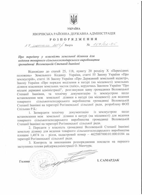 №157/02-06 2019-03-04 Про передачу у власність земельної ділянки для ведення товарного сільськогосподарського виробництва громадянці Воловецькій Степанії Іванівні