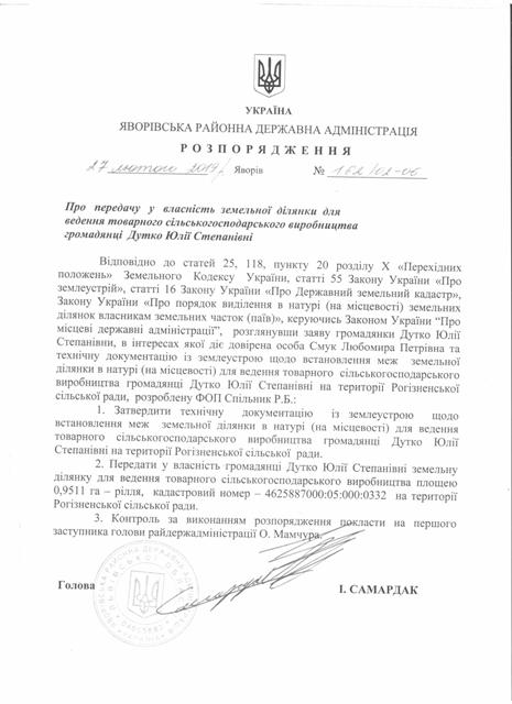 №162/02-06 2019-03-04 Про передачу у власність земельної ділянки для ведення товарного сільськогосподарського виробництва громадянці Дутко Юлії Степанівні