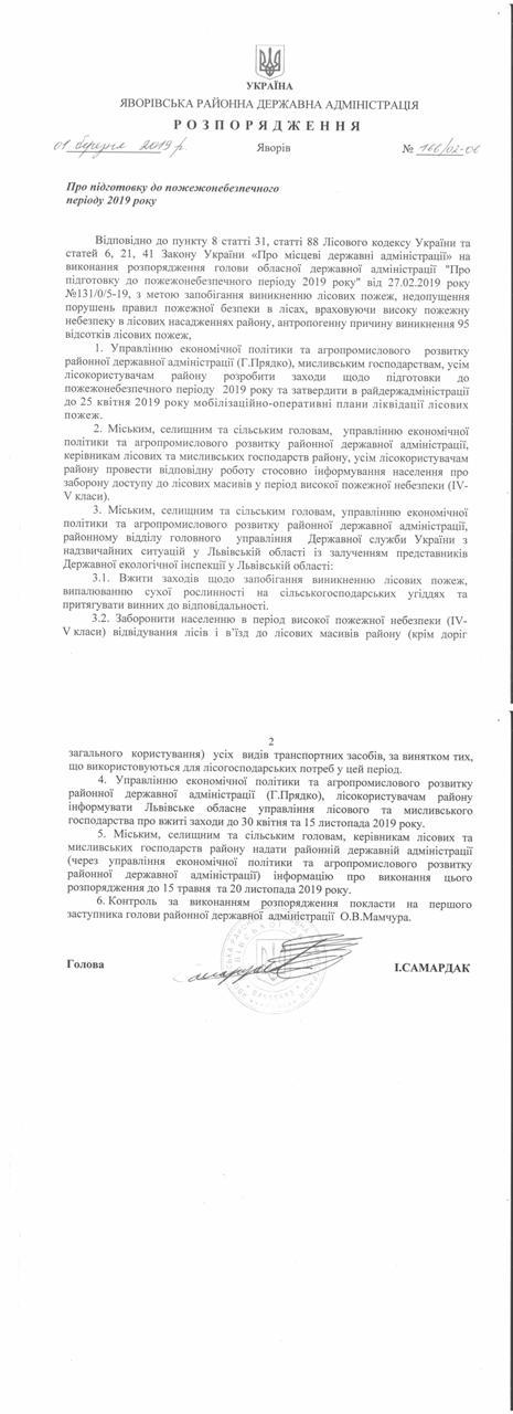 №166/02-06 2019-03-07 Про підготовку до пожежонебезпечного періоду 2019 року