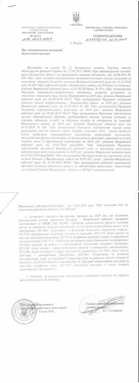 №179/02-06, № 16 2019-03-12 Про затвердження паспортів бюджетних програм