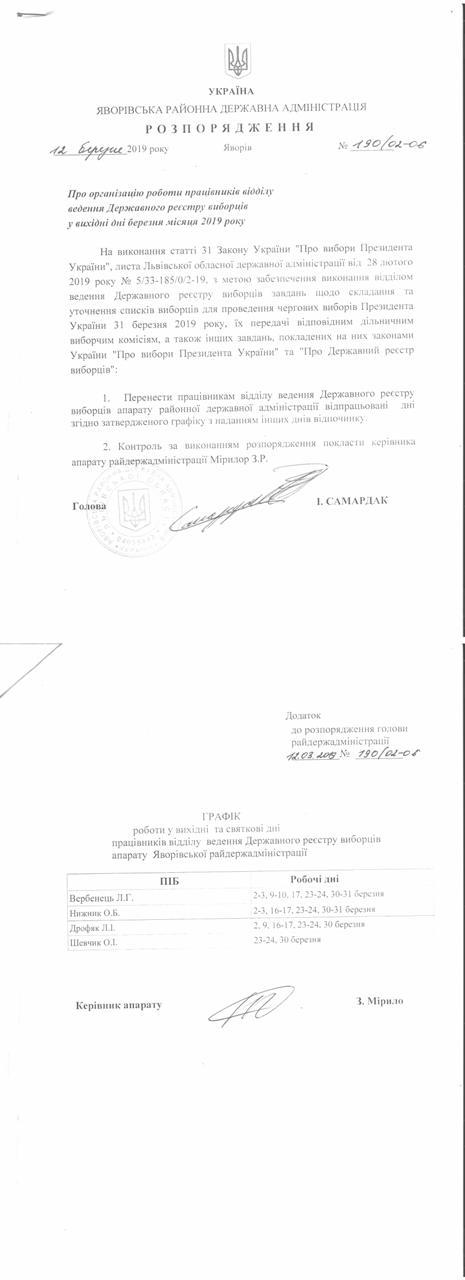 №190/02-06 2019-03-15 Про організацію роботи працівників відділу ведення Державного реєстру виборців у вихідні дні березня місяця 2019 року
