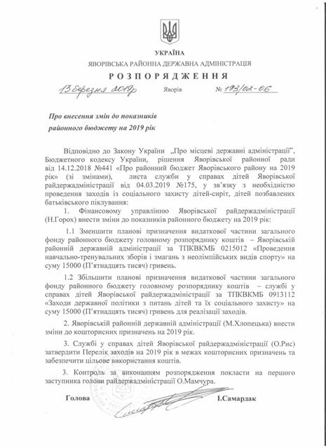 №196/02-06 2019-03-19 Про порядок організації та знищення секретних документів у Яворівській районній державній адміністрації (ДСК)