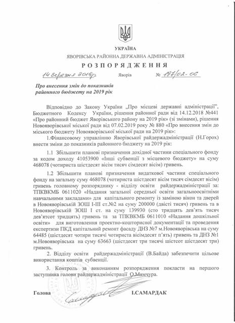№192/02-06 2019-03-18 Про визначення режимних приміщень у Яворівській районній державній адміністрації (ДСК)