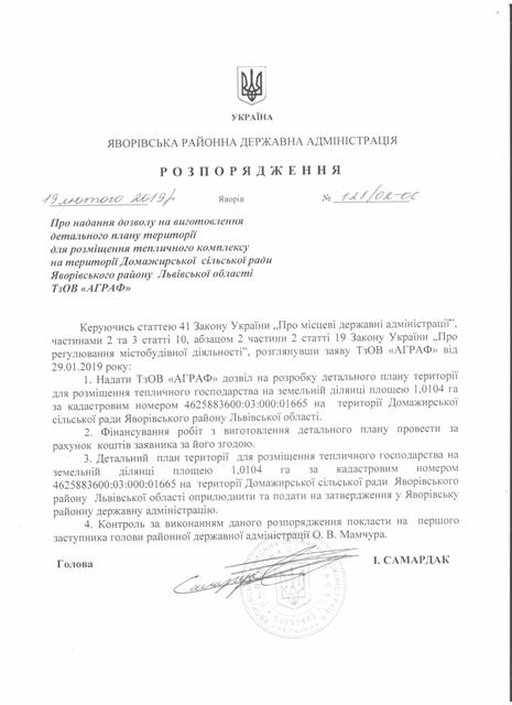 №128/02-06 2019-02-22 Про надання дозволу на виготовлення детального плану території для розміщення тепличного комплексу на території Домажирської сільської ради Яворівського району Львівської області ТзОВ "АГРАФ"