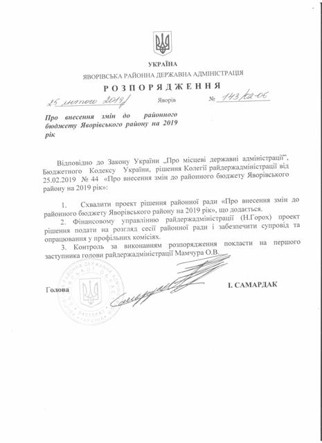 №143/02-06 2019-02-28 Про внесення змін до районного бюджету Яворівського району на 2019 рік