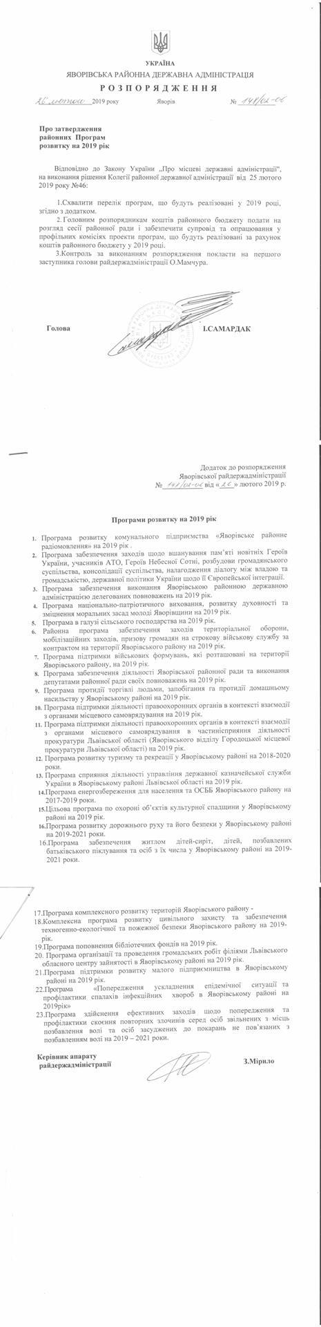 №149/02-06 2019-03-01 Про затвердження Програми соціально-економічного та культурного розвитку Яворівського району на 2019 рік