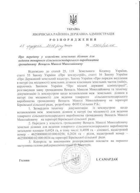 №1300/02-06 2018-12-27 Про передачу у власність земельних ділянок для ведення товарного сільськогосподарського виробництва громадянину Венцель Миколі Миколайовичу