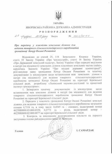 №1301/02-06 2018-12-27 Про передачу у власність земельних ділянок для ведення товарного сільськогосподарського виробництва громадянці Качур Оксані Романівні