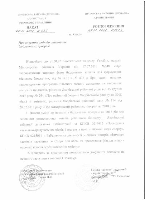 №1314/02-06 2018-12-27 Про внесення змін до паспортів бюджетних програм