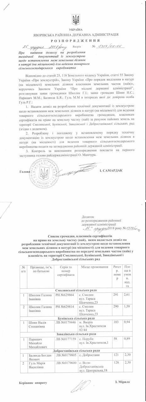 №1313/02-06 2018-12-27 Про передачу в оренду невитребуваних земельних часток (паїв) на території Смолинської сільської ради Яворівського району Львівської області