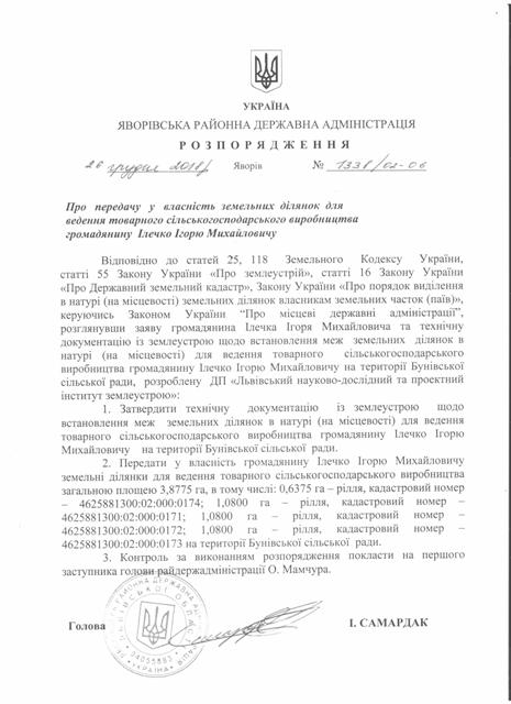 №1338/02-06 2018-12-29 Про передачу у власність земельних ділянок для ведення товарного сільськогосподарського виробництва громадянину Ілечко Ігорю Михайловичу