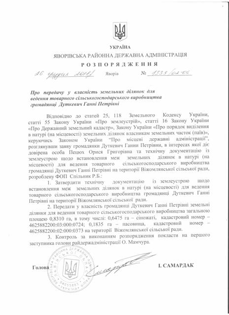 №1339/02-06 2018-12-29 Про передачу у власність земельних ділянок для ведення товарного сільськогосподарського виробництва громадянці Дуткевич Ганні Петрівні