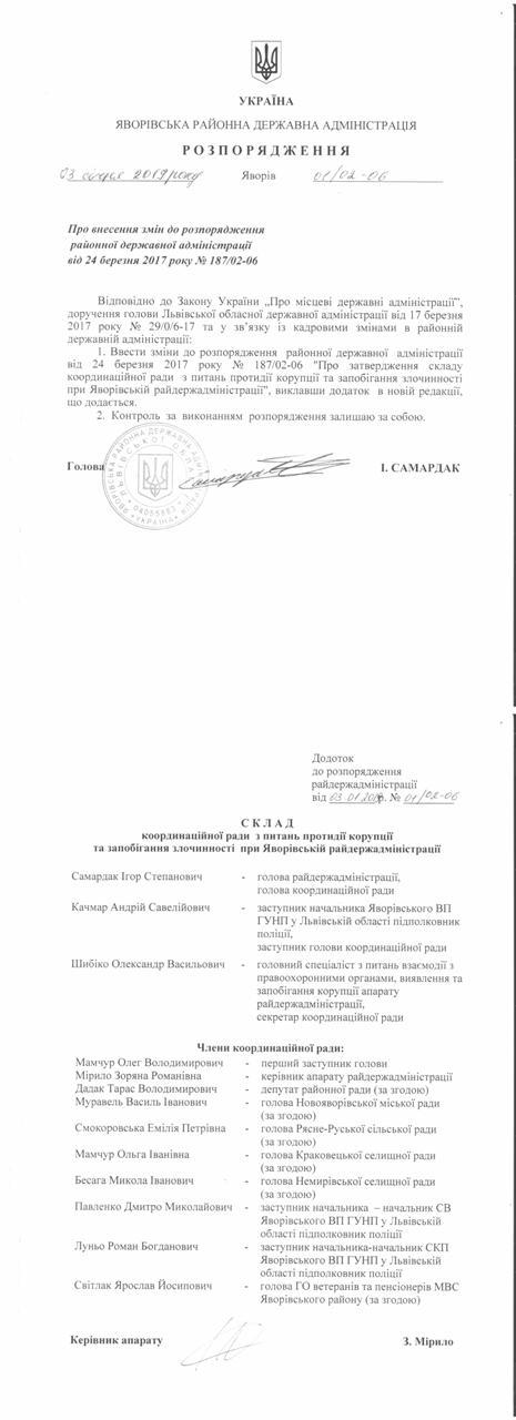 №01/02-06 2019-01-09 Про внесення змін до розпорядження районної державної адміністрації від 24 березня 2017 року № 187/02-06