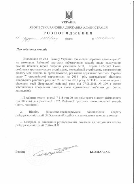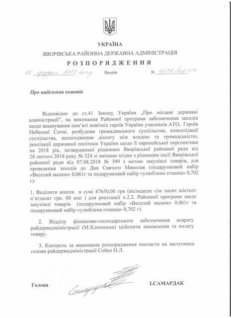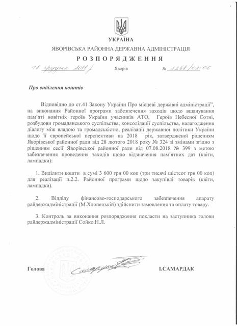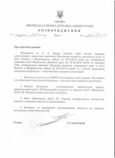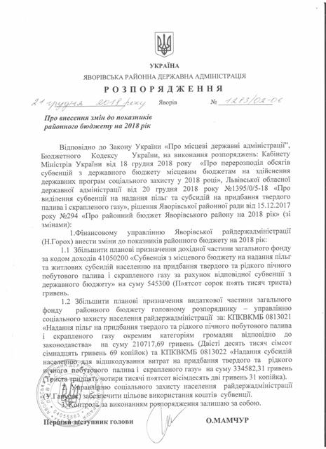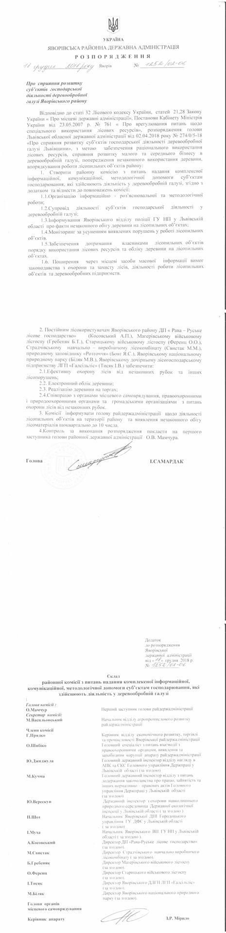 №1252/02-06 2018-12-21 Про сприяння розвитку суб"єктів господарської діяльності деревообробної галузі Яворівського району