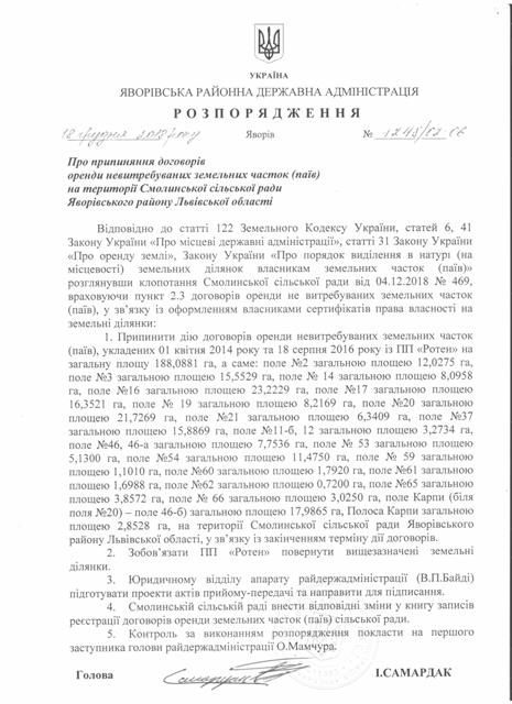 №1248/02-06 2018-12-21 Про припинення договорів оренди невитребуваних земельних часток (паїв) на території Смолинської сільської ради Яворівського району Львівської області
