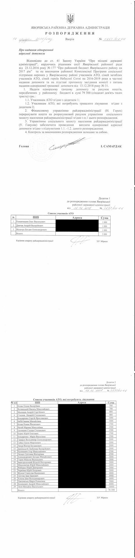 №1253/02-06 2018-12-21 Про надання одноразової адресної допомоги