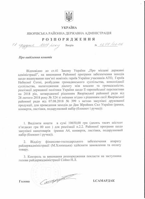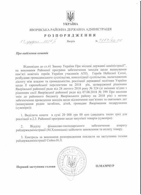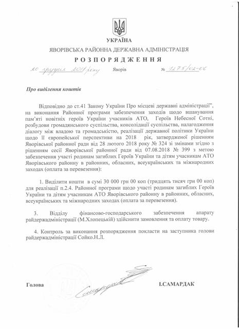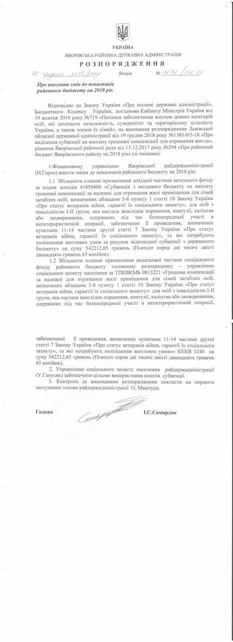 №1279/02-06 2018-12-22 Про підготовку територіальної оборони у районі територіальної оборони № 21 (Яворівський район) у 2019 році (ДСК)