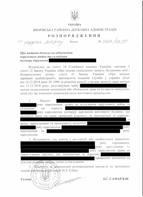 №1262/02-06 2018-12-21 Про надання дозволу на відчуження нерухомого майна та укладення договору дарування