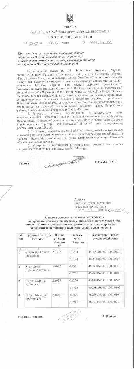 №1263/02-06 2018-12-21 Про передачу у власність земельних ділянок громадянам Великопільської сільської ради для ведення товарного сільськогосподарського виробництва на території Великопільської сільської ради
