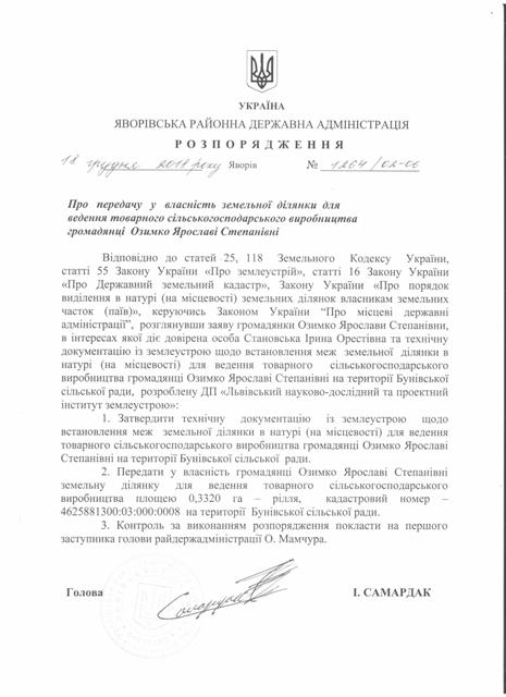 №1264/02-06 2018-12-21 Про передачу у власність земельної ділянки для ведення товарного сільськогосподарського виробництва громадянці Озимко Ярославі Степанівні