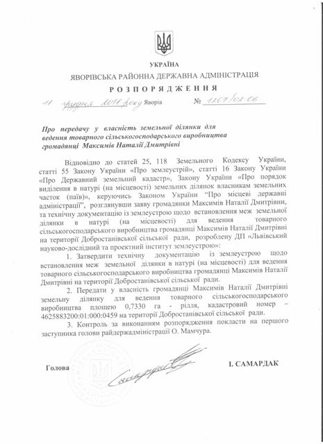 №1267/02-06 2018-12-21 Про передачу у власність земельної ділянки для ведення товарного сільськогосподарського виробництва громадянці Максимів Наталії Дмитрівні