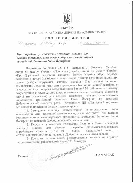 №1269/02-06 2018-12-21 Про передачу у власність земельної ділянки для ведення товарного сільськогосподарського виробництва громадянці Іванишин Ганні Йосифівні