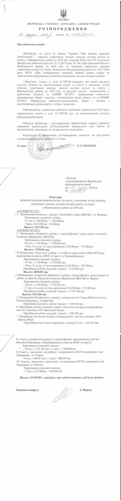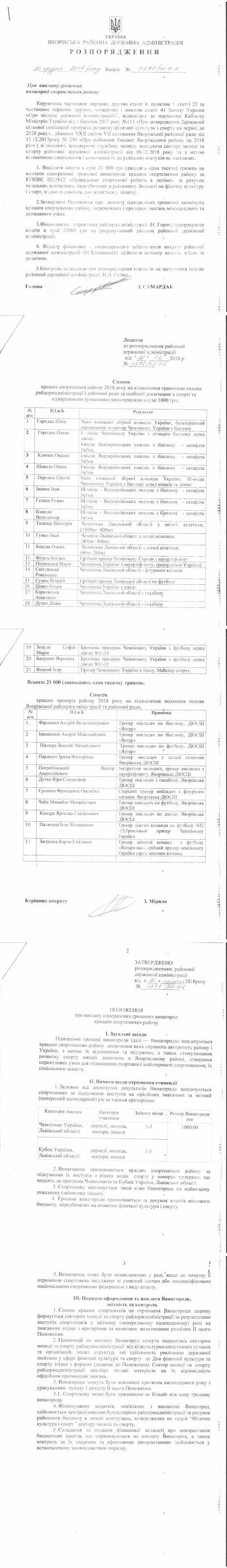 №1278/02-06 2018-12-22 Про виплату грошових винагород спортсменам району