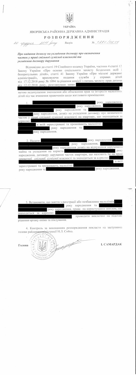 №1296/02-06 2018-12-27 Про надання дозволу на укладення договору про визначення часток у праві спільної сумісної власності та укладення договору дарування