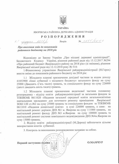 №1271/02-06 2018-12-22 Щодо перерозподілу коштів