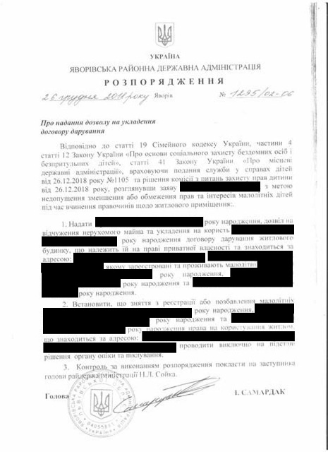 №1295/02-06 2018-12-27 Про надання дозволу на укладення договору дарування