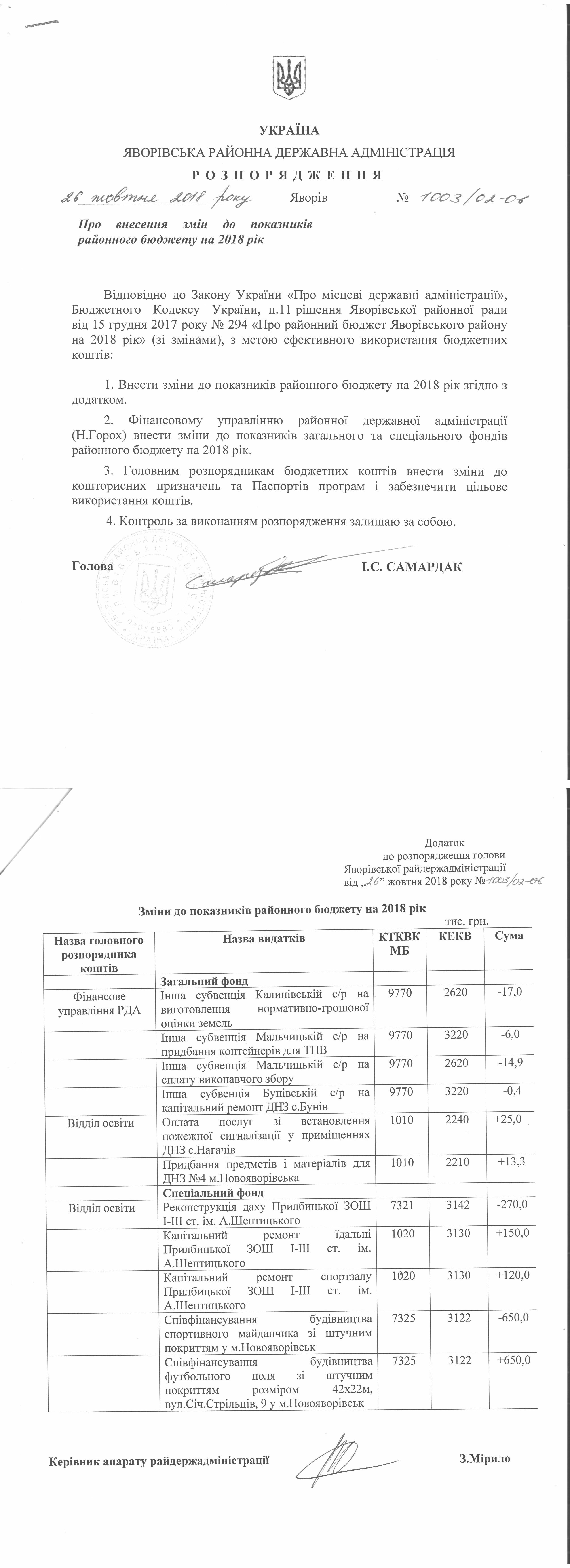 Про внесення змін до розпорядження голови райдержадміністрації від 02 березня 2018 року № 165/02-06 |