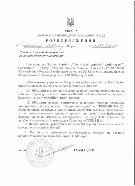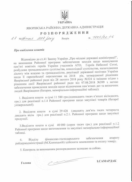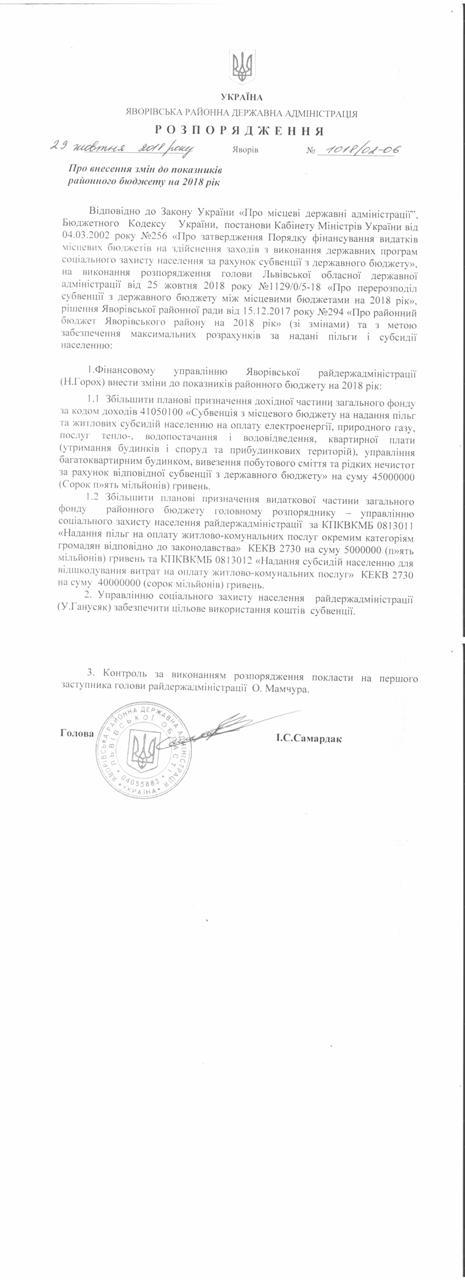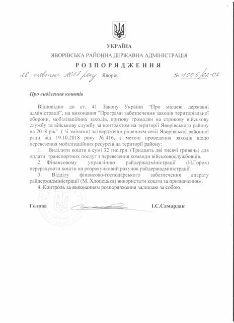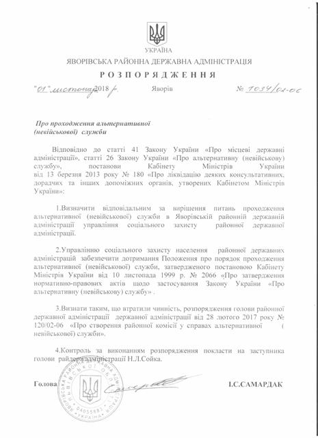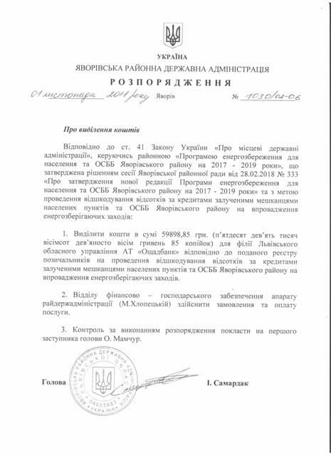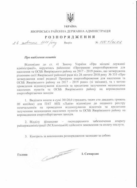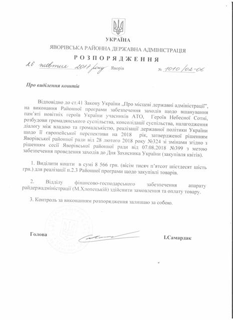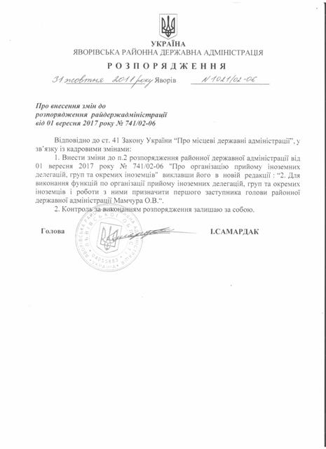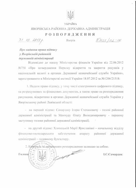 Про надання права підпису у Яворівській районній державній адміністрації |