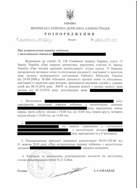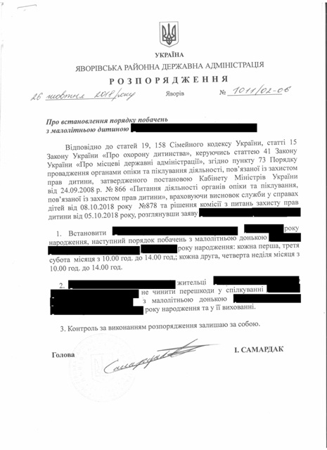 Про встановлення порядку побачень з малолітньою дитиною |