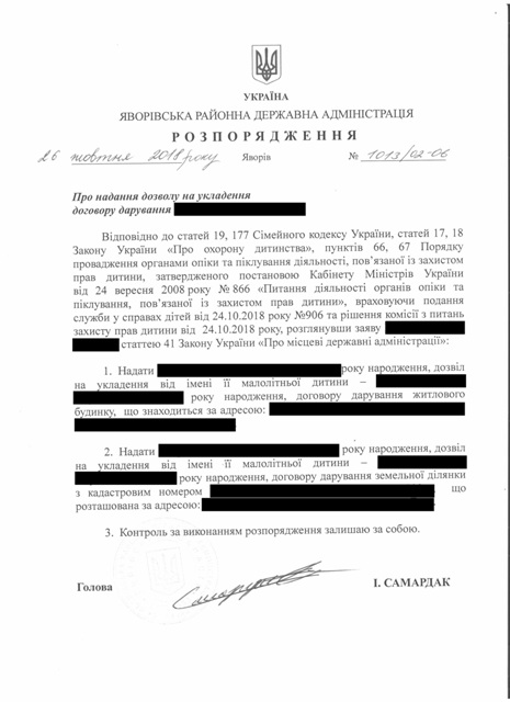 Про надання дозволу на укладення договору дарування |