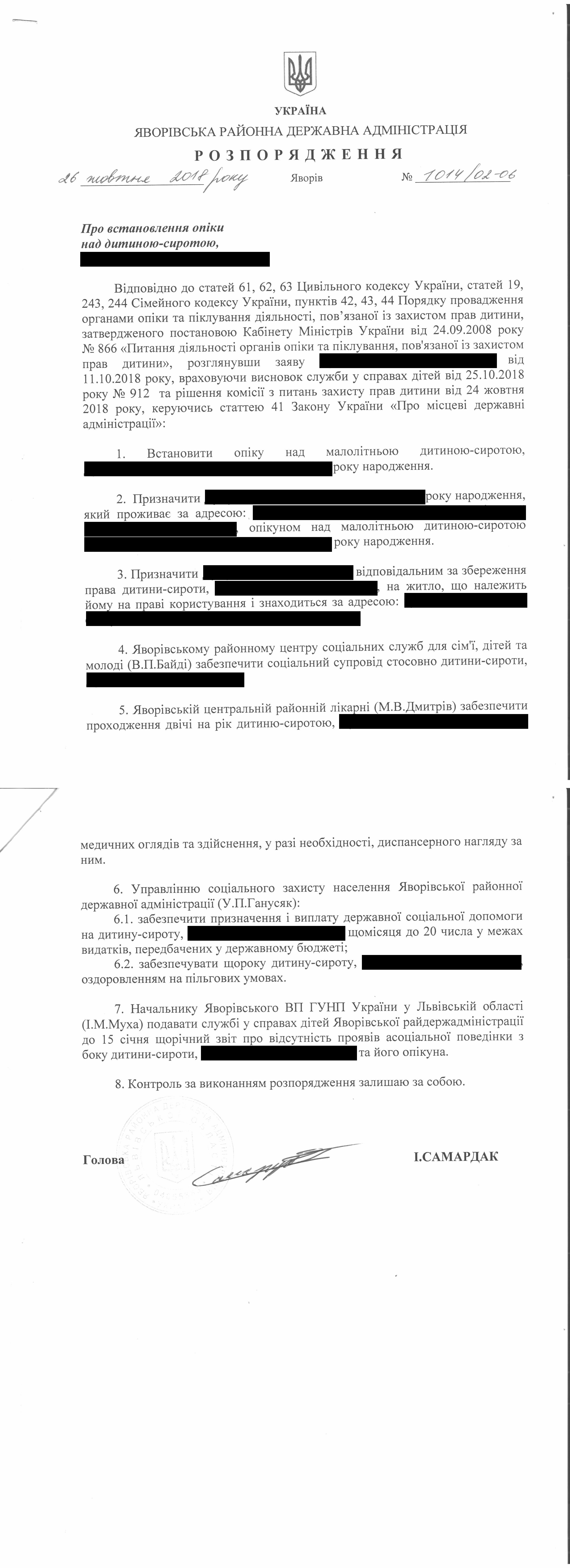 Про встановлення опіки над дитиною-сиротою |