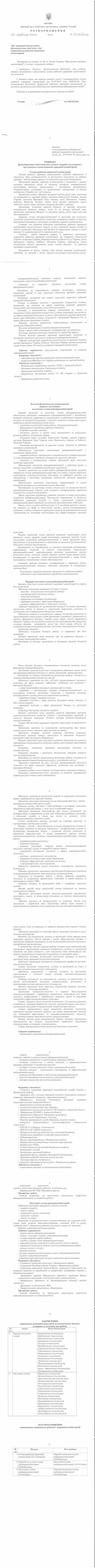 Про затвердження розподілу функціональних обов"язків між керівництвом районної державної адміністрації |