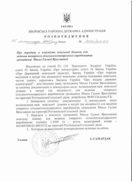 Про передачу у власність земельної ділянки для ведення товарного сільськогосподарського виробництва громадянці Мисьо Галині Ярославівні |