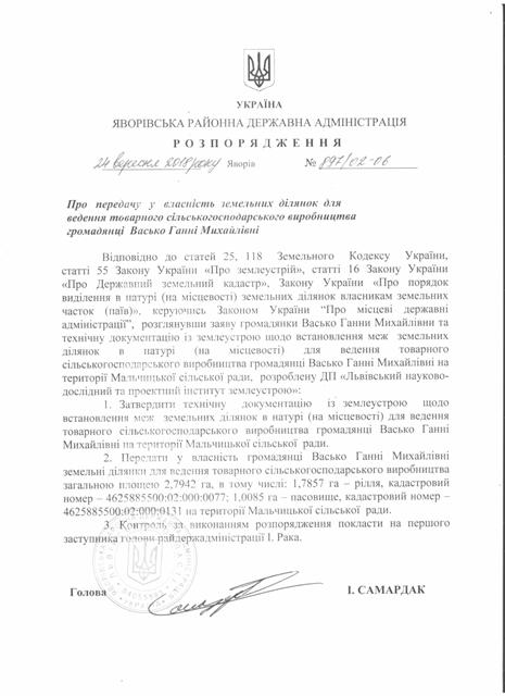 №897/02-06 2018-09-27 Про передачу у власність земельних ділянок для ведення товарного сільськогосподарського виробництва громадянці Васько Ганні Михайлівні