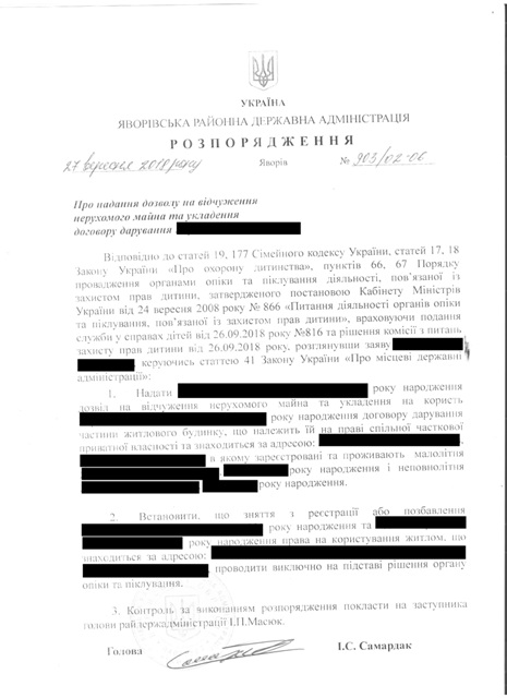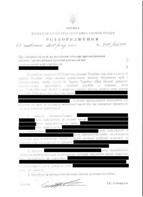 №918/02-06 2018-10-05 Про надання дозволу на укладення договору дарування про визначення часток у праві спільної сумісної власності та укладення договору дарування