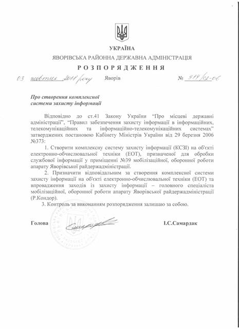 №914/02-06 2018-10-05 Про створення комплексної системи захисту інформації